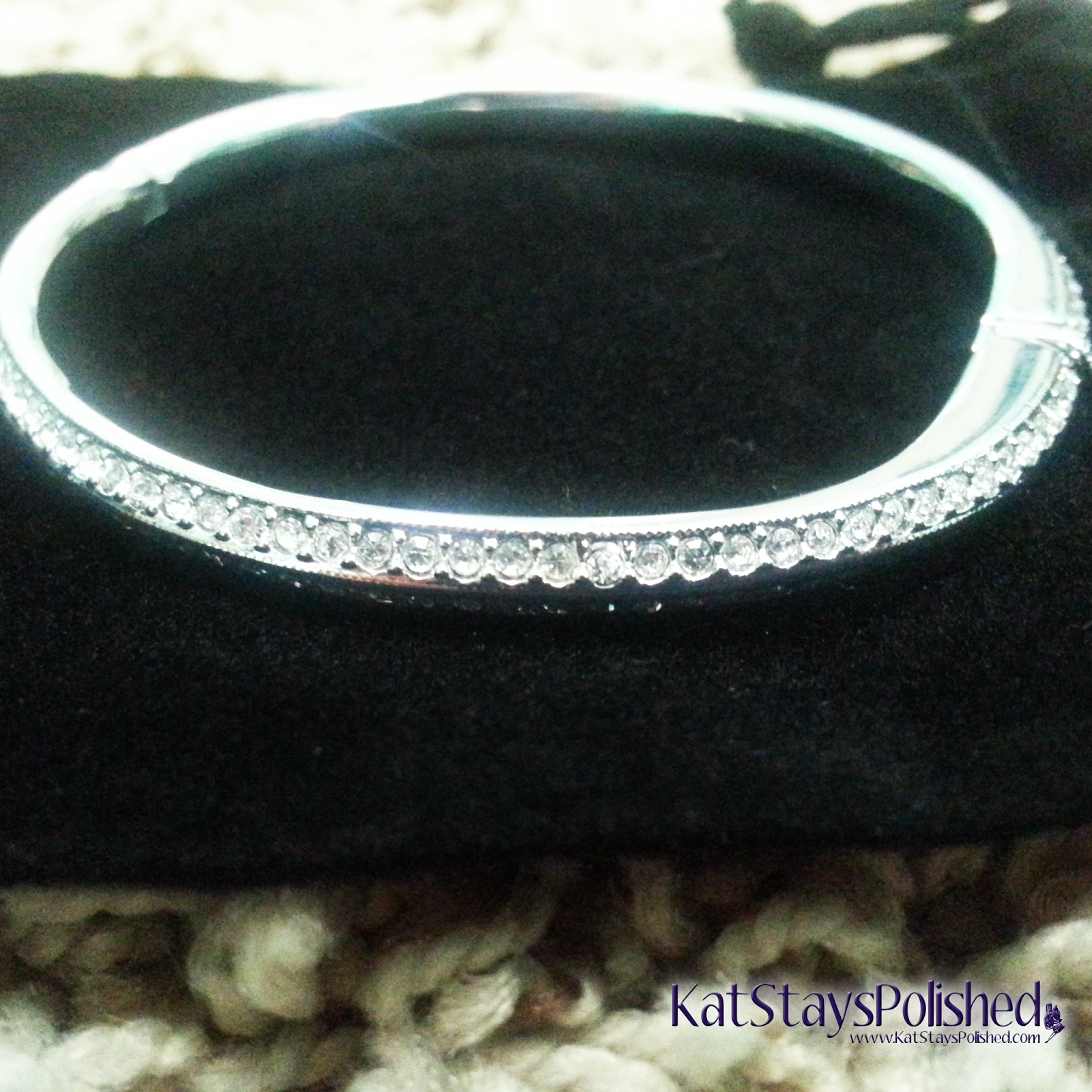 Lastly, we have the jewelry pieces. They all match, which is really awesome and they all come in these cute velvet pouches. Up first is the bangle. Usually i have issues wearing bangles, but this one fits my very tiny wrist without falling off.